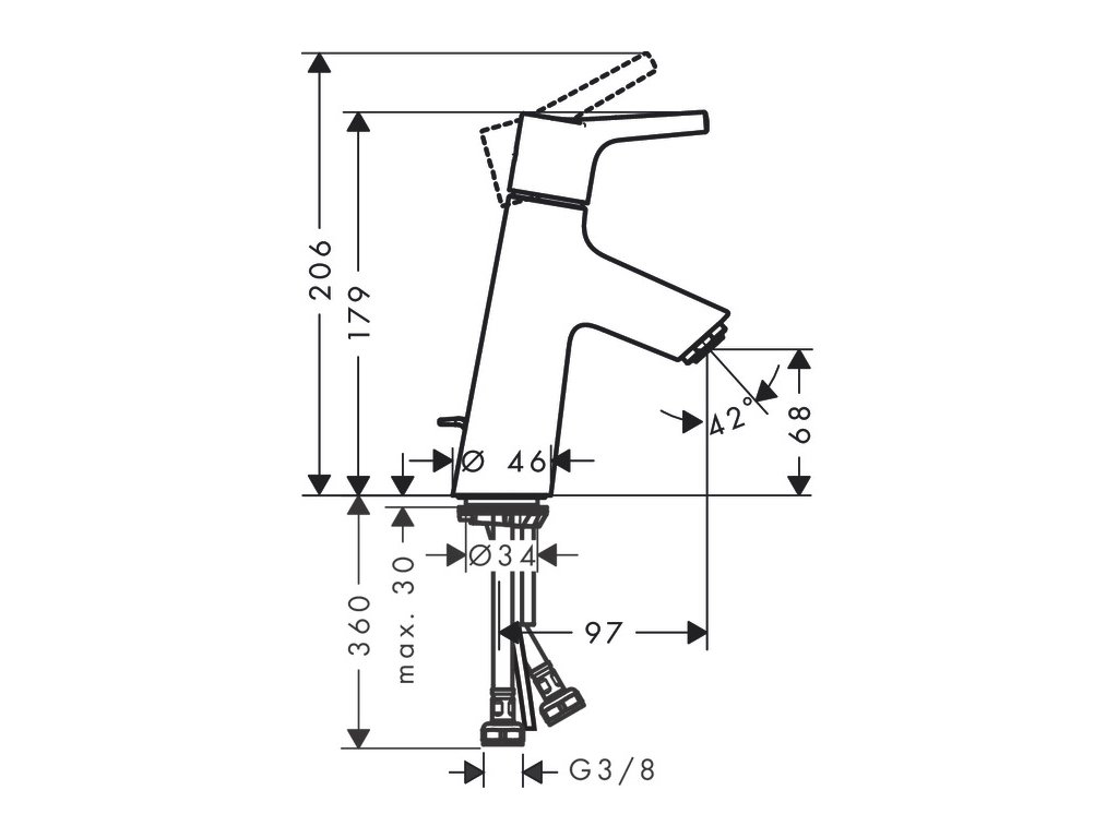Elegantní kolíková rukojeť umožňuje jemné ovládání vody. Správné množství vody a teplotu lze nastavit jedním pohybem ruky. Trvalou radost z ovládání zajišťuje kvalitní keramický systém baterie s lehkým chodem v osvědčené kvalitě firmy hansgrohe. Při montáži lze nastavit omezení teploty, které chrání před příliš horkou vodou.