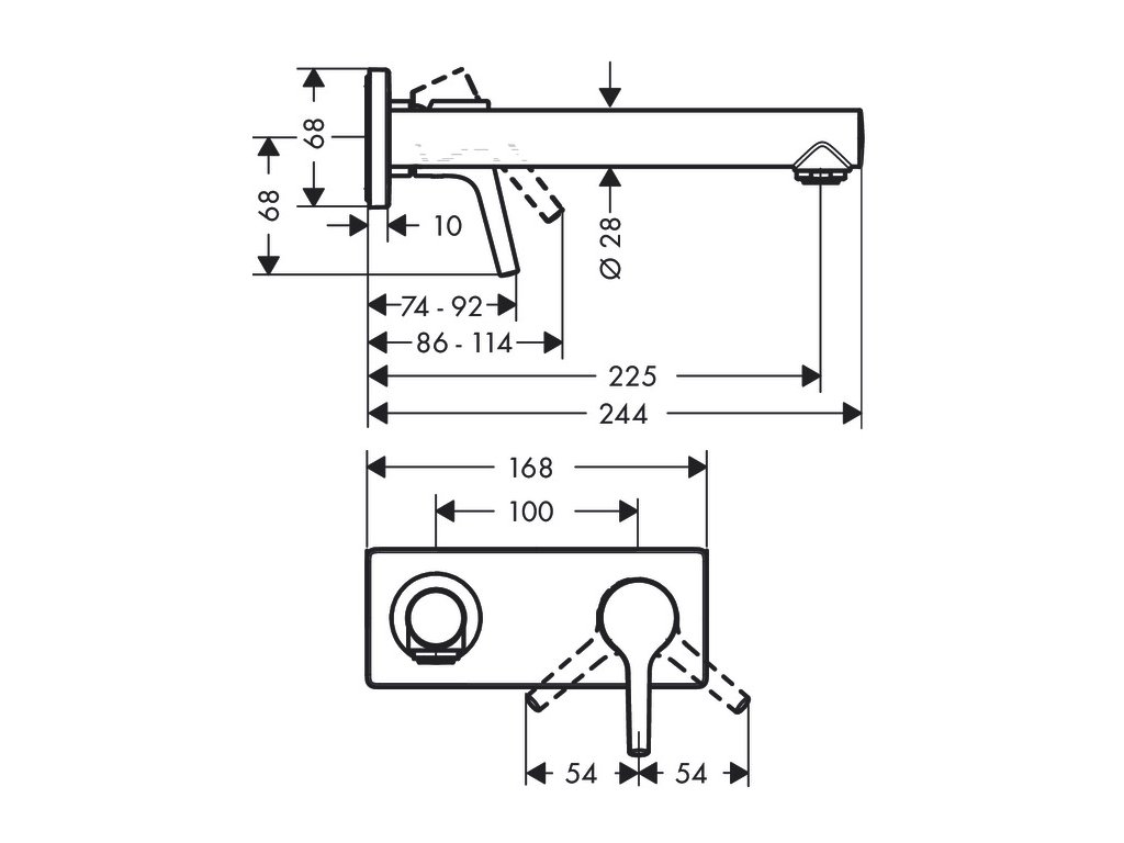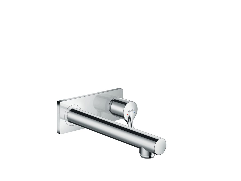 Podomítková instalace pákové umyvadlové baterie Talis S k nástěnné montáži zkrášlí koupelnu díky výtoku o délce 22,5 cm. Nástěnná montáž vytváří místo pro design, praktické funkce a více prostoru u umyvadla. K instalaci je třeba použít základní těleso č. 13622180.