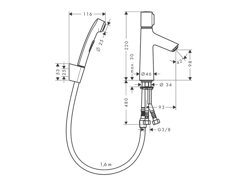 Hansgrohe Talis Select S chrom umyvadlová baterie 100 s ruční sprchou bidette a sprchovou hadicí 160 cm 72291000• obsahuje: Umyvadlová baterie ruční sprcha Bidette sprchový držák sprchová hadice odtoková souprava