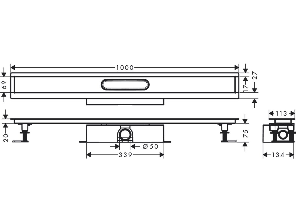 Hansgrohe uBox universal Úplná sada pro standardní instalaci - 1000 pro vrchní sady sprchových žlabů