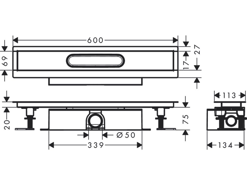 Hansgrohe uBox universal Úplná sada pro standardní instalaci - 600 pro vrchní sady sprchových žlabů
