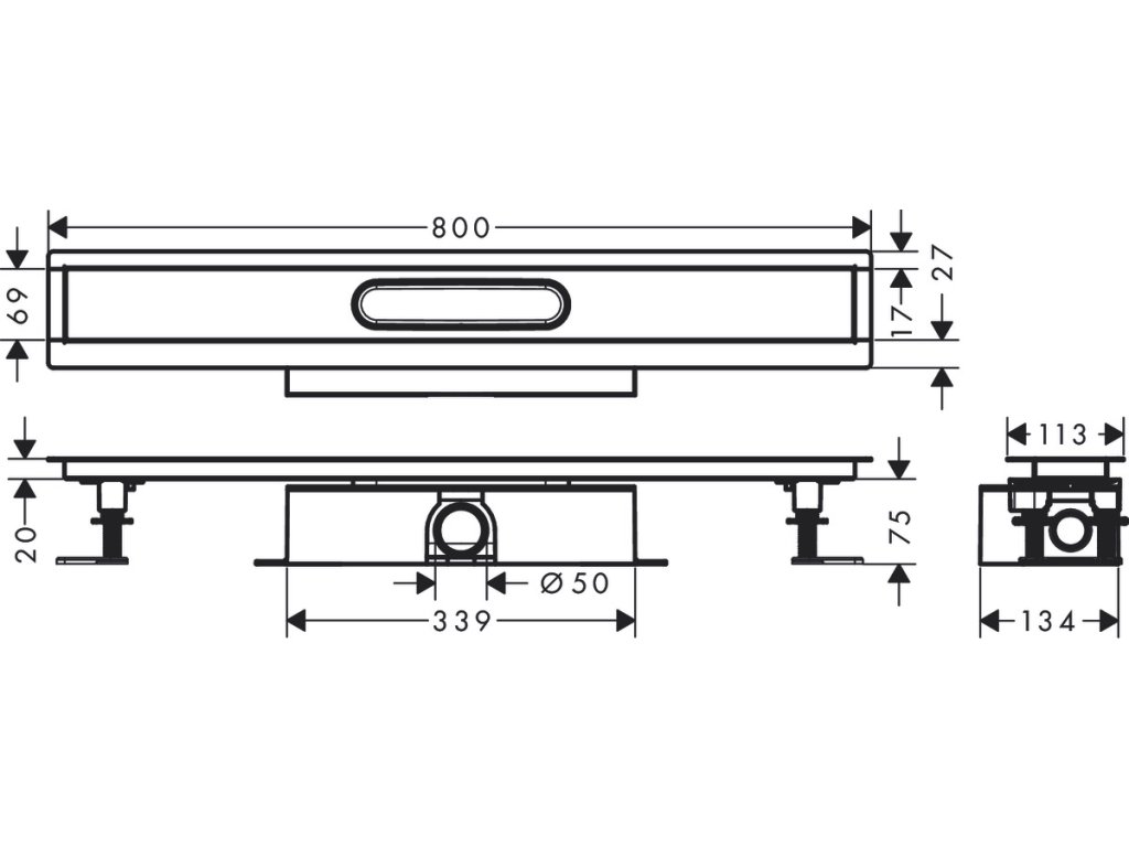 Hansgrohe uBox universal Úplná sada pro standardní instalaci - 800 pro vrchní sady sprchových žlabů