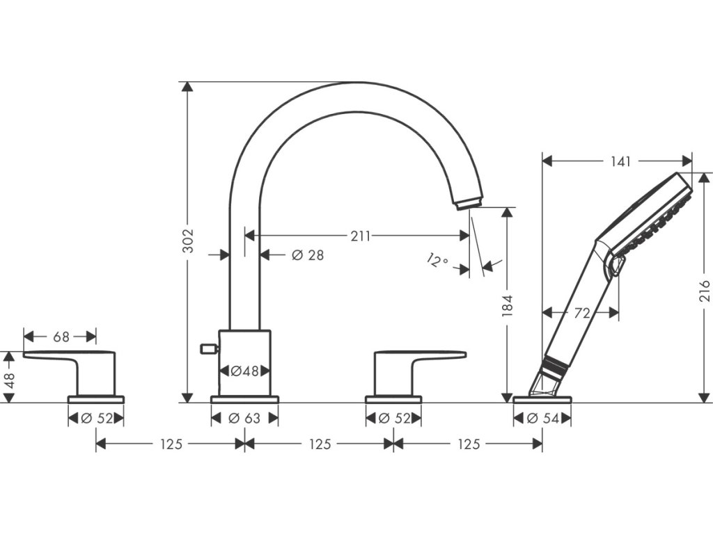 Čtyřotvorová baterie na okraj vany hansgrohe Vernis Blend se sprchovou hlavicí nadchne uživatele harmonickým designem a působivým matně černým povrchem. Do vany tak vnáší eleganci, uživatelskou přívětivost a potěšení ze sprchování. Díky průtoku až 25,3 l/min lze za malý okamžik napustit vanu. A 100mm ruční sprcha Vernis Blend s průtokem až 17,9 l/min (při tlaku 3 bary) nabízí zábavu a komfort, kterými jsou řešení hansgrohe pro vany a sprchy známé – a za skvělou cenu.