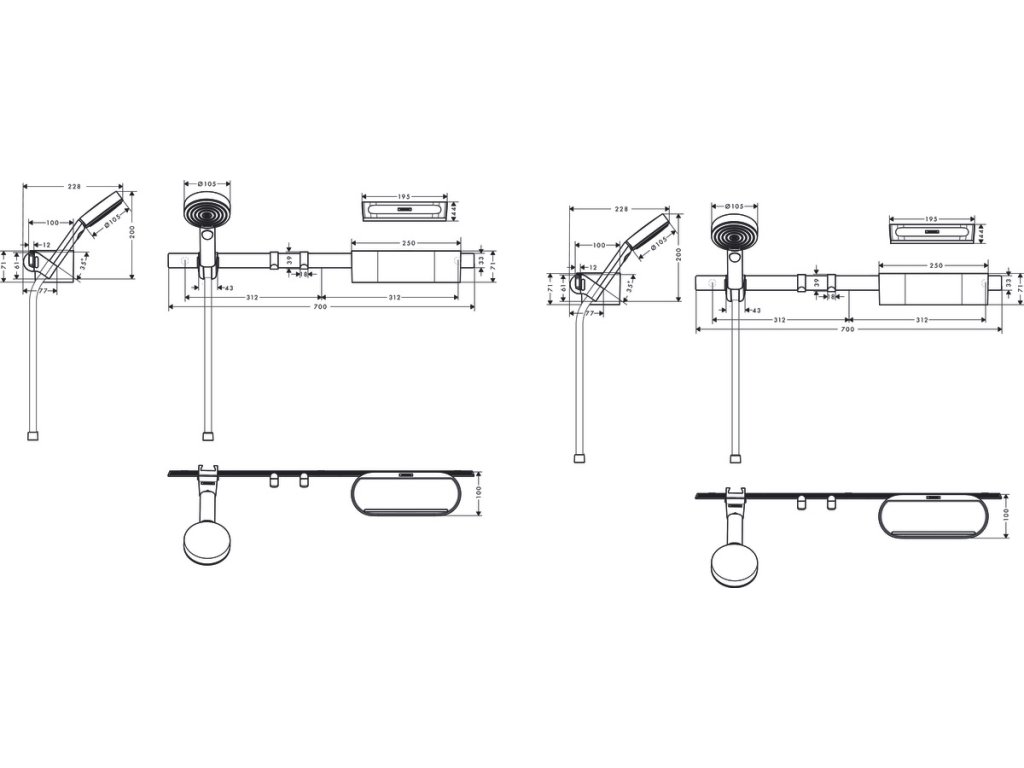 Sada WallStoris s ruční sprchou nabízí chytrou sprchovou sadu od hansgrohe, kterou lze nainstalovat bez nevzhledných otvorů. Při vodorovné montáži se tyč o délce 70 cm připevňuje ke stěně naplocho a slouží jako praktický držák. Lze k ní připevnit poličky, háčky a mnoho dalších doplňků. Jednoduše je nacvakněte, přesuňte a máte hotovo! Na přání lze sadu kombinovat i s druhou tyčí, která se prodává samostatně. Pokud je připevněná svisle, slouží jako prostorově úsporná sprchová tyč.