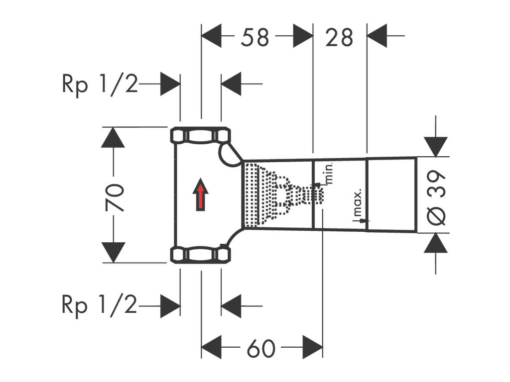 Hansgrohe Základní těleso 52 l/min pro uzavírací ventil pod omítku s vřetenem DN15