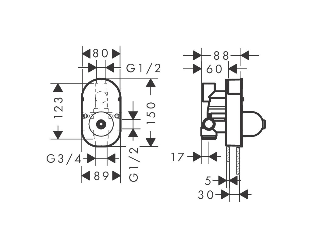 Hansgrohe základní těleso pro pákovou vanovou baterii pod omítku 31741180• součásti dodávky: základní těleso montážní návod