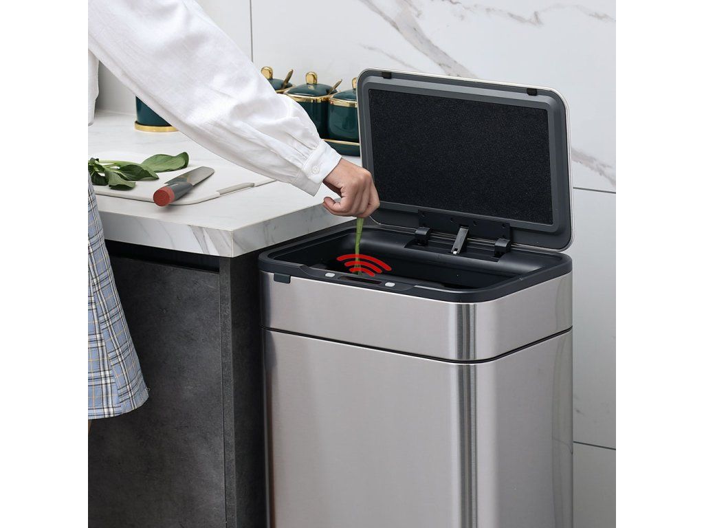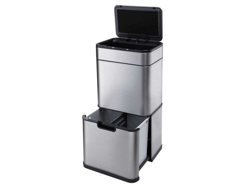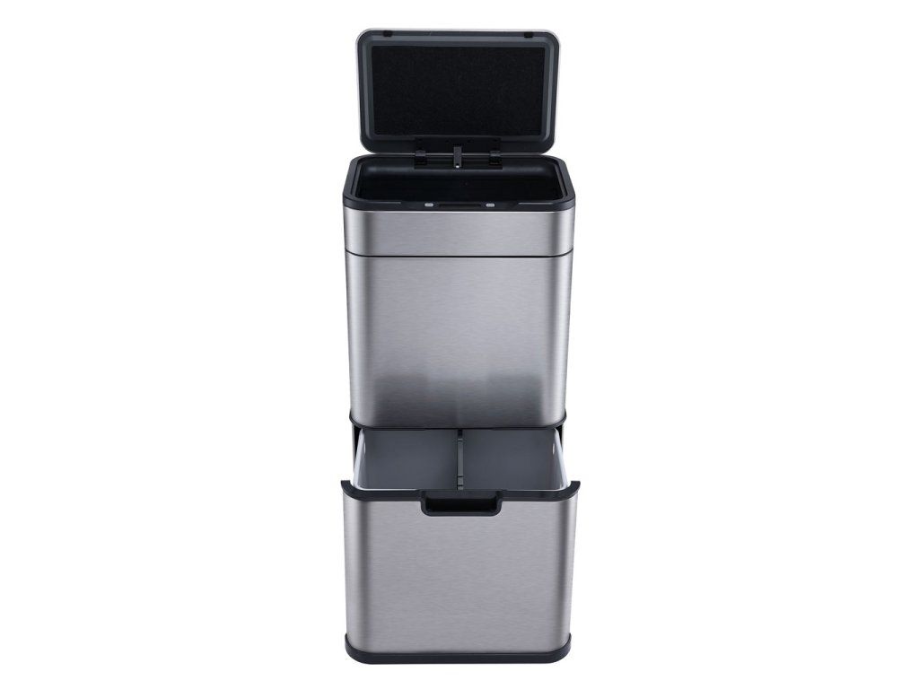 Na horní nádobě je umístěné bezdotykové víko s IR senzorem, takže vyhazování odpadků probíhá zcela bezdotykově. Přiblížením ruky do těsné blízkosti senzoru se víko samo otevře. Víko zůstane otevřené, dokud se ruka od senzoru neoddálí. Jakmile se od senzoru vzdálíte, víko se zavře do 5 sekund.