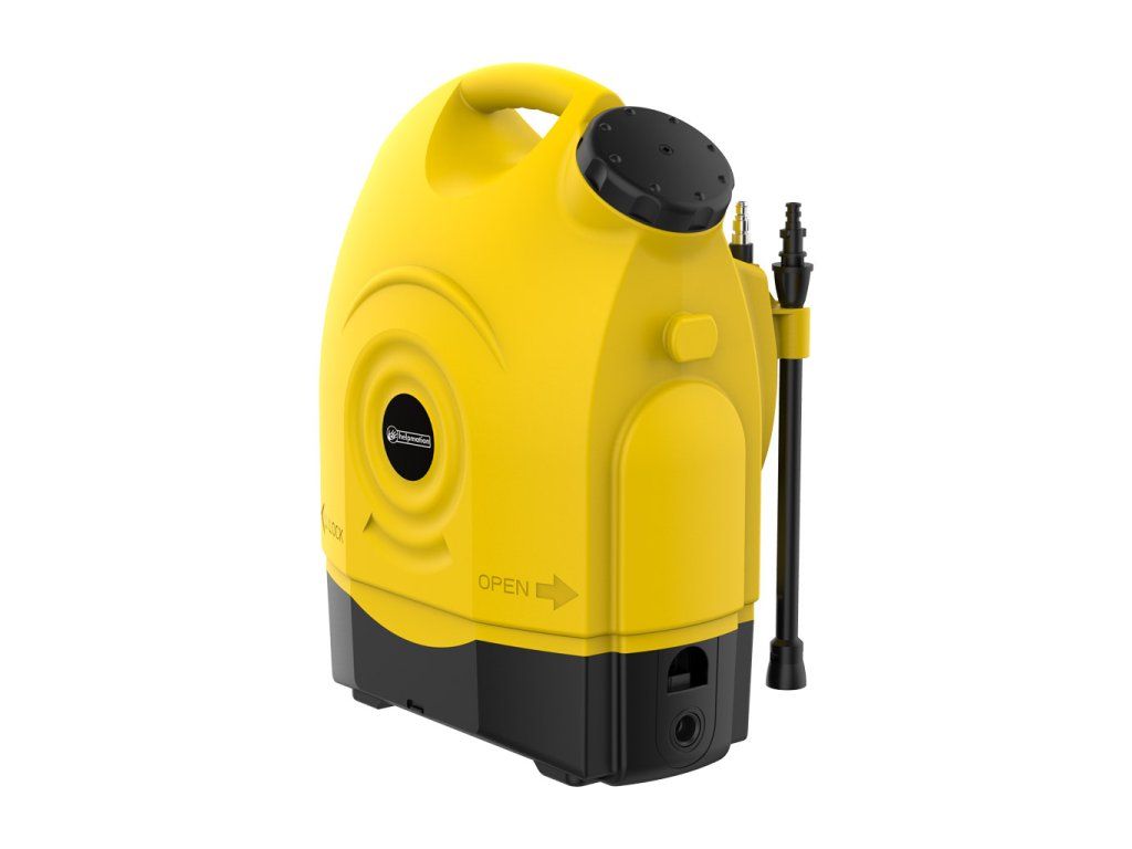 Přenosná tlaková myčka Helpmation JP-C1H je kompaktní a lehký pomocník vhodný na velice účinné mytí jízdního kola, motocyklu, kočárků, automobilu, karavanu, lodě, zahradního nářadí či zahradního nábytku a mnoho dalšího. Rychle Vám pomůže v boji se špínou, ať už jste na zahradě, na sídlišti, na závodech nebo v kempu. Nádrž má objem 17 litrů a můžete ji naplnit studenou nebo teplou vodou až 40°C. Součástí balení je lithium-iontová baterie, tlaková pistole, prodlužovací nástavec s nastavitelnou tryskou a jemný kartáč. Přenosná myčka Helpmation pracuje nezávisle na zdroji elektřiny a nepotřebuje přímý přívod vody. Používat ji můžete na baterii nebo zapojenou do zásuvky autozapalovače.