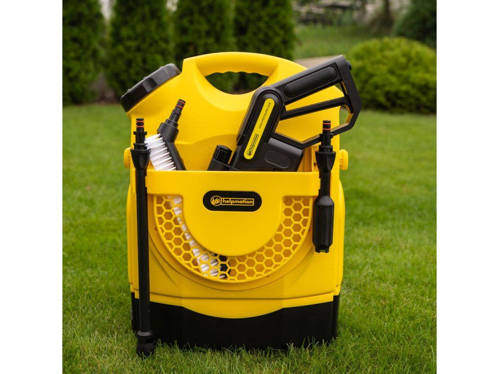 Přenosnou tlakovou myčku Helpmation využijete na zahradě, na sídlišti, na závodech, v kempu i na dovolené. Lehký a kompaktní tvar myčky je stvořen, abyste ji měli neustále po ruce, například v zavazadlovém prostoru automobilu. Přenosná myčka Helpmation zajistí velice účinné mytí nejen horských kol, motocyklu, automobilu, karavanu, lodě, zahradního nářadí či zahradního nábytku, ale najde využití například i na dovolené na velice rychlé omytí zablácených bot.