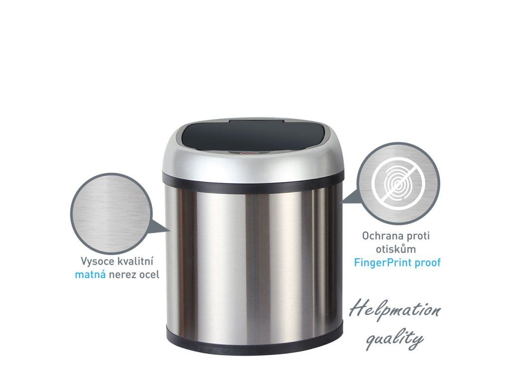 Odolná konstrukce odpadkových košů Helpmation z prvotřídní matné nerezové oceli opatřené ochranou proti otiskům prstů Fingerprint Proof nabízí moderní vzhled, snadné čištění, ochranu proti korozi. Víko odpadkového koše je vyrobeno z pevného ABS plastu. Kvalitní materiály zaručí dlouhodobé používání.