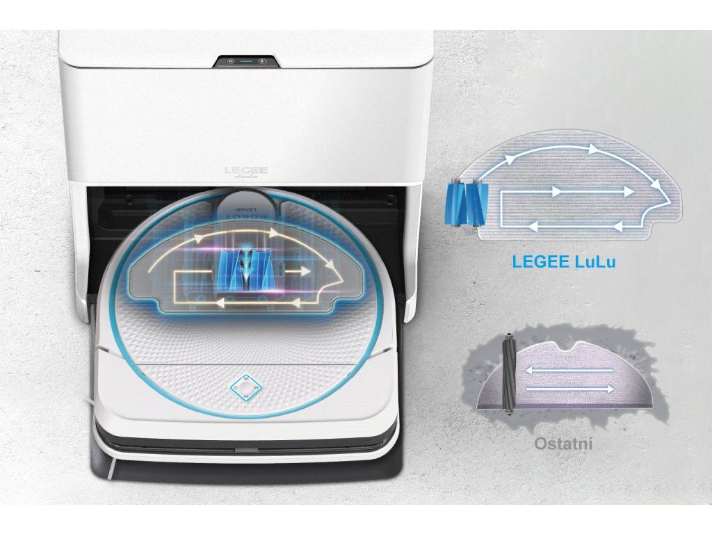 Inovativní design LEGEE LuLu umožňuje uživateli snadnou údržbu robotického vysavače LEGEE D8 pomocí dvou válcových kartáčů, okamžitého odsávání špinavé vody, CNC obrysového mytí, sušení mopu a automatického doplňování čisté vody do LEGEE D8.