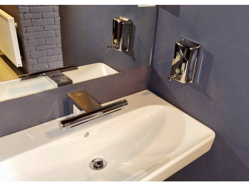 Hygienické mytí a sušení rukou – jednoduché, rychlé a pohodlné. Své ruce jednoduše vložíte doprostřed pod vodovodní baterii, automaticky začne téct voda o předem nastavené teplotě. Po stranách baterie se nachází dvě trysky vysoušeče. Spuštění vysoušeče je rovněž bezkontaktní, stačí pod trysky vsunout ruce a dle potřeby je osušit.