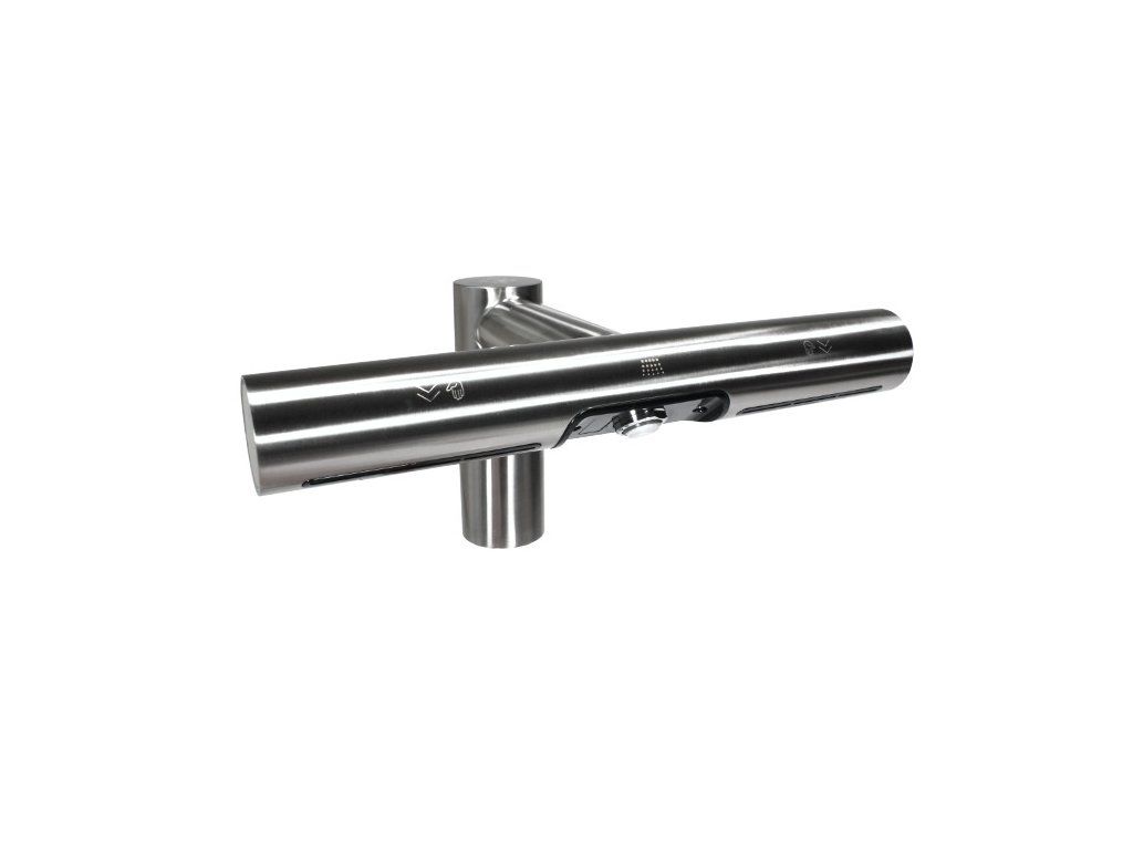 Tělo baterie s vysoušečem ve tvaru písmene T je vyrobeno z kovu nebo kvalitní nerezové oceli. Jednotka vysoušeče je bezpečně ukryta pod umyvadlem, mimo dosah případných vandalů. Vysoušeč tak zároveň zbytečně nezabírá místo.