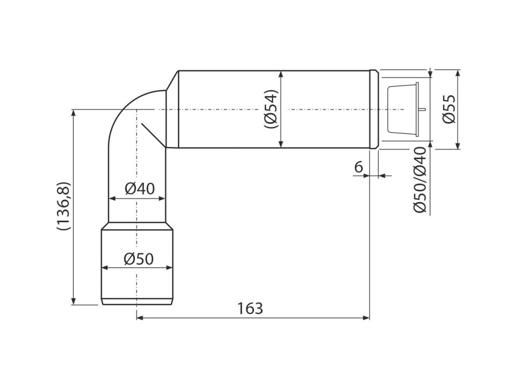 Koleno odpadu DN50/40