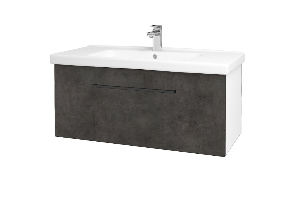 Koupelnová skříňka BIG INN SZZ 100 - N01 Bílá lesk / Úchytka T06 / D16 Beton tmavý