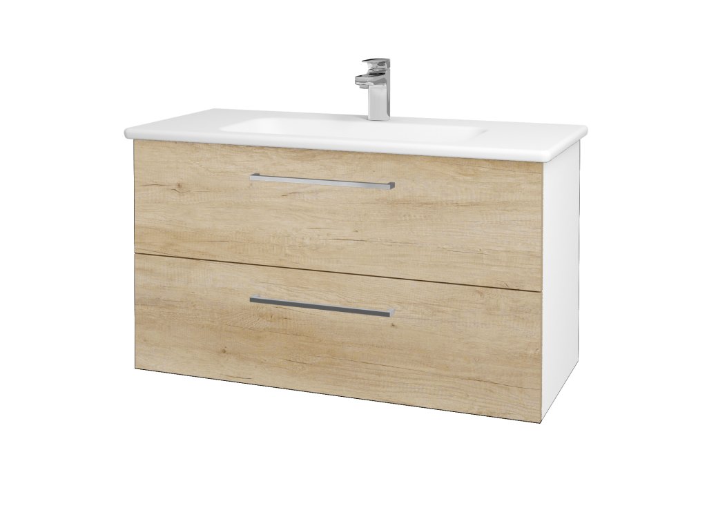 Skříňka GIO SZZ2 100 je osazena keramickým umyvadlem Euphoria 100 s prostornou odkládací plochou.