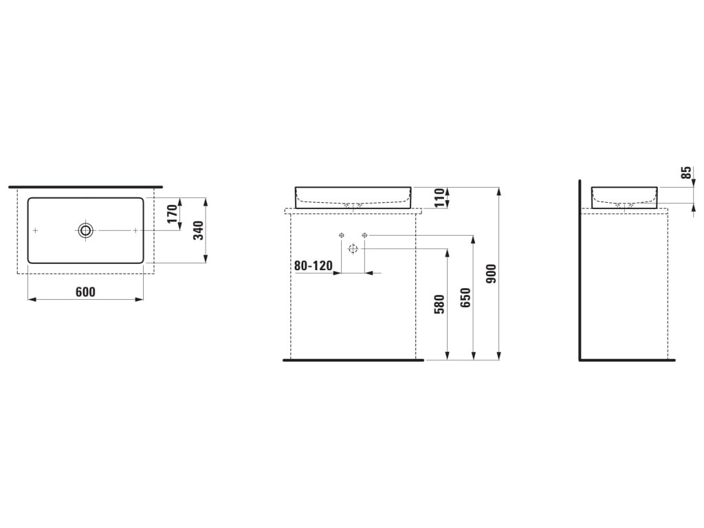 Laufen Living square bílé umyvadlo 60x34cm, SaphirKeramik H8114340001121bez přepadu, bez otvoru pro baterii
