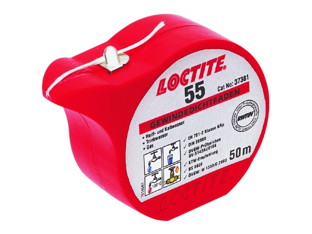 LOCTITE L55 50m těsnící vlákno IDH 527319Těsnicí šňůra na závity - okamžité utěsnění s plným tlakem. Umožňuje spolehlivé následné úpravy polohy montáže. LOCTITE 55 je určený k zajišťování a těsnění kovových a plastových trubek a závitových potrubních dílů. Nevytvrzuje a poskytuje tak okamžité utěsnění s plným tlakem. Ideální volba pro rychlé snadné a spolehlivé utěsnění. Tento produkt má schválení pro kontakt s plynem a pitnou vodou a je certifikovaný pod NSF/ANSI Standard 61.