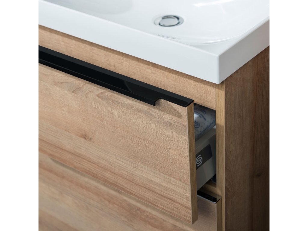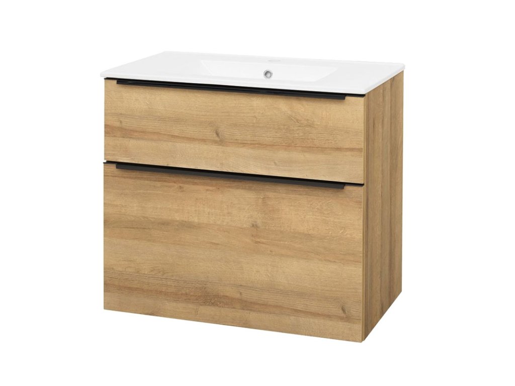 Mereo Mailo, koupelnová skříňka s keramickým umyvadlem 81 cm, dub Riviera, černé madlo