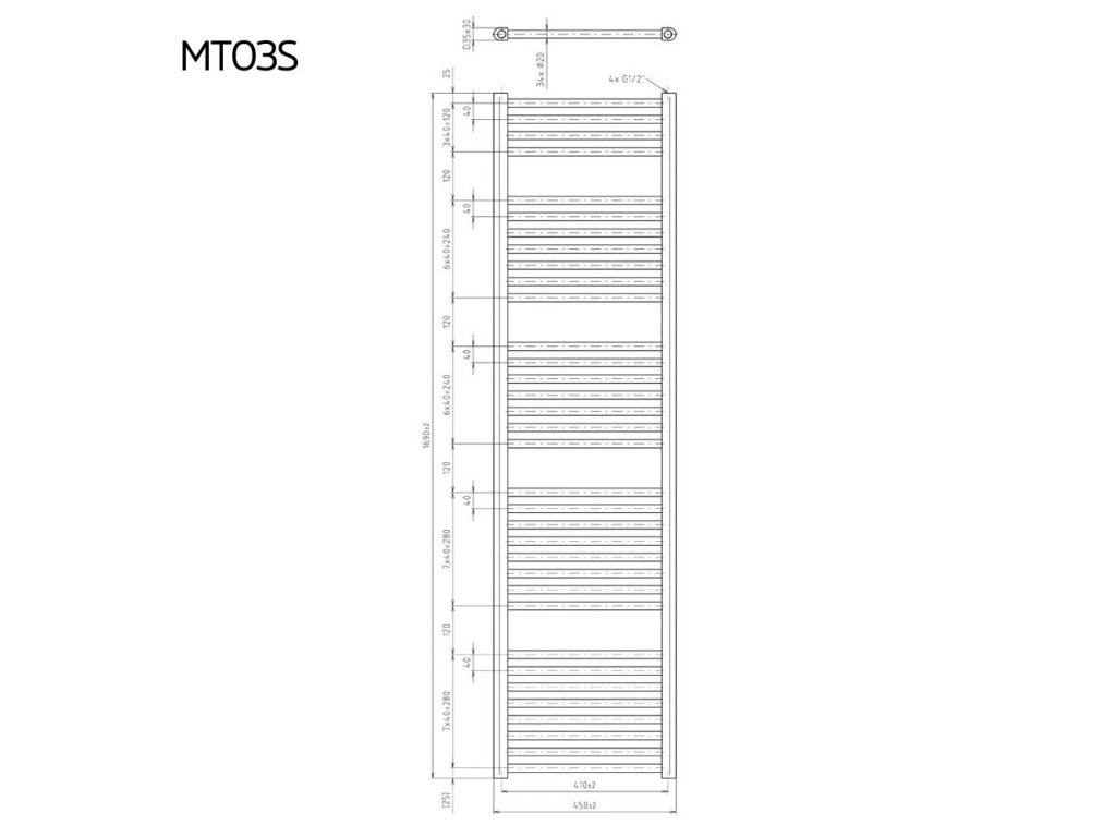 Mereo Otopný žebřík, rovný, 450x1690 mm, bílý, středové připojení