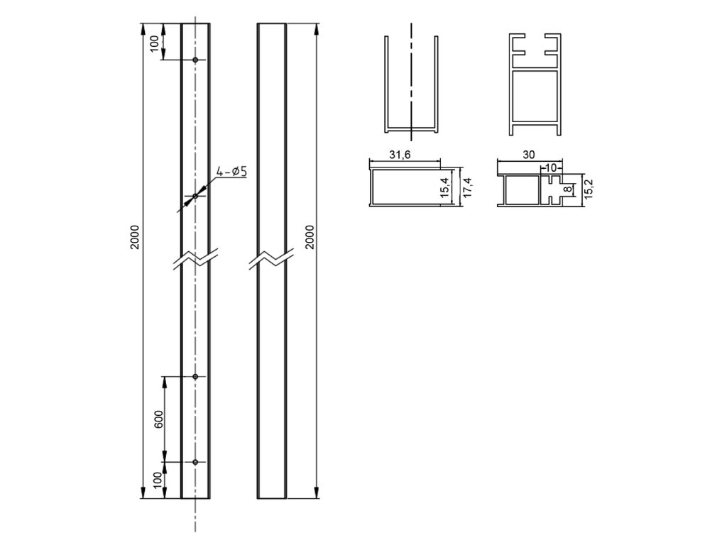 Sada fixačního a bočního profilu pro CK10303Z, CK10403Z, pro sklo 8 mm, výška 2 m, chrom ALUDoplňkové parametry