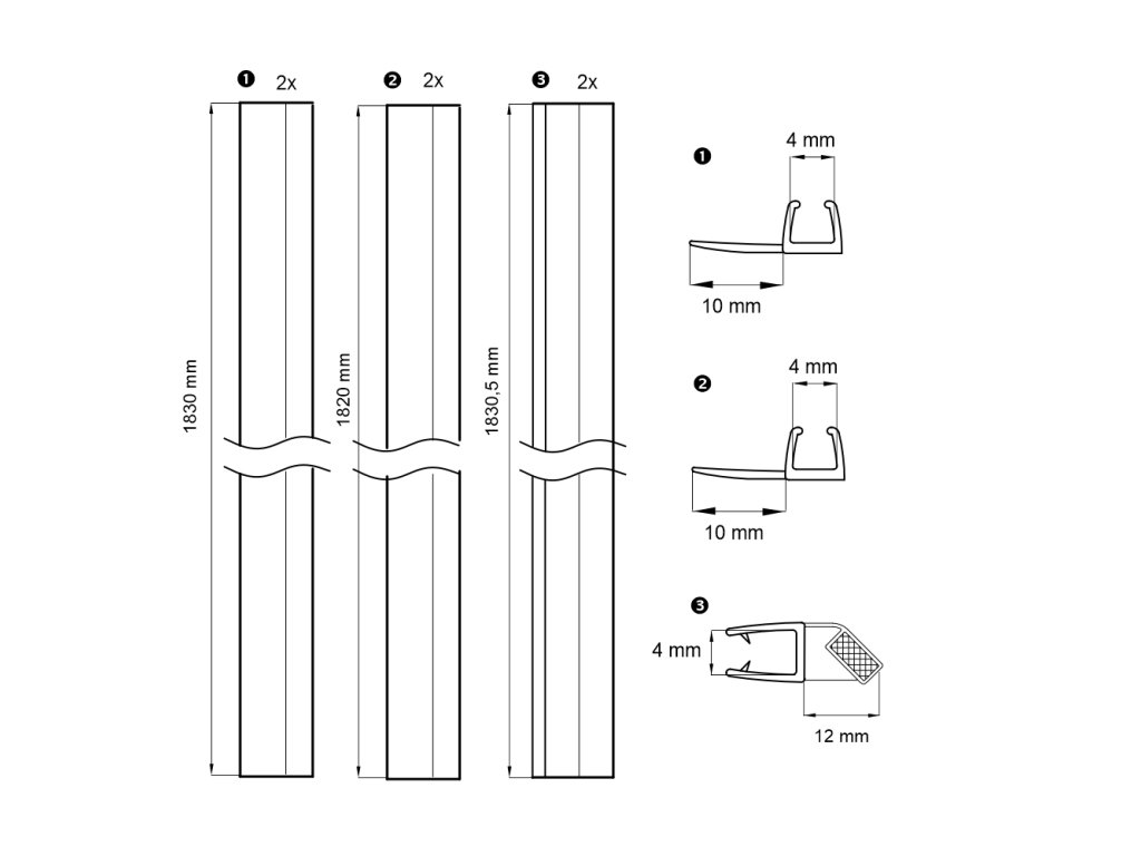 Mereo Sada těsnění pro CK3x1xxZ,N,H, (posuvné dveře 2 ks, fixní sklo 2 ks, mag. lišty 2 ks), sklo 4 mm