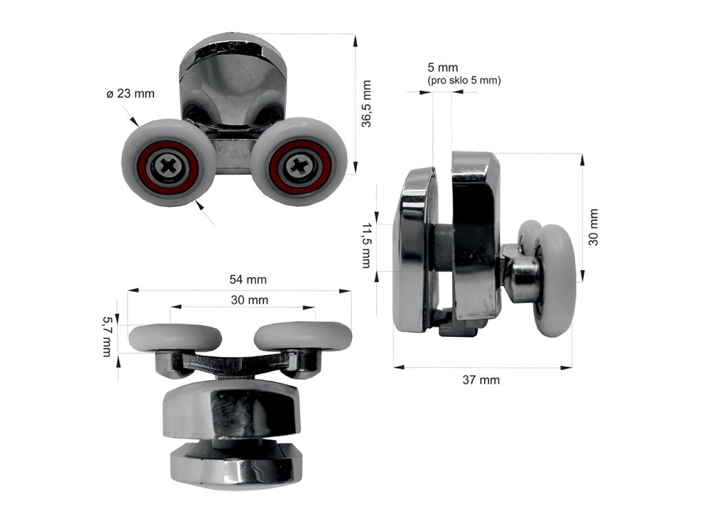 Náhradní spodní pojezdy vyjímatelné pro sprchové kouty Kora, sada 4 ksDoplňkové parametry