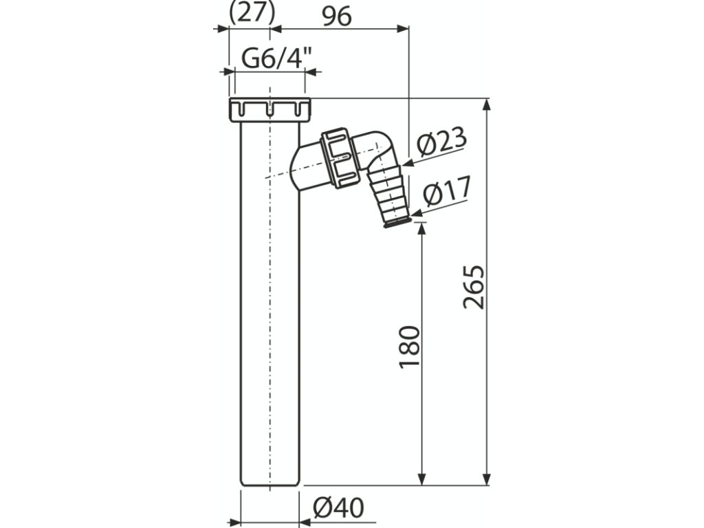 Mezikus k sifonu DN 40 s převlečnou maticí G 6/4" a přípojkou Ø 17–23 mm, délka 265 mm, plast A44MS-DN40