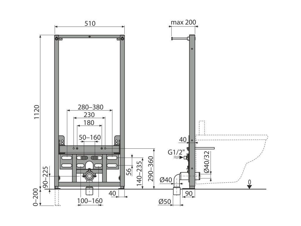 Konstrukce rámu dovoluje kotvení k samostatné dostatečně nosné sádrokartonové příčce nebo před nosnou stěnu