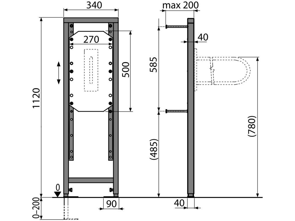 Pro montáž před nosnou stěnu nebo do sádrokartonové konstrukce