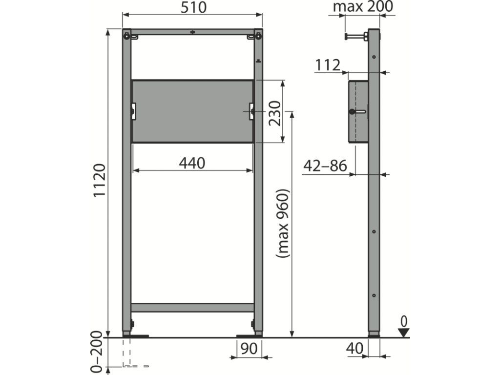Konstrukce rámu dovoluje kotvení k samostatné dostatečně nosné sádrokartonové příčce nebo před nosnou stěnu