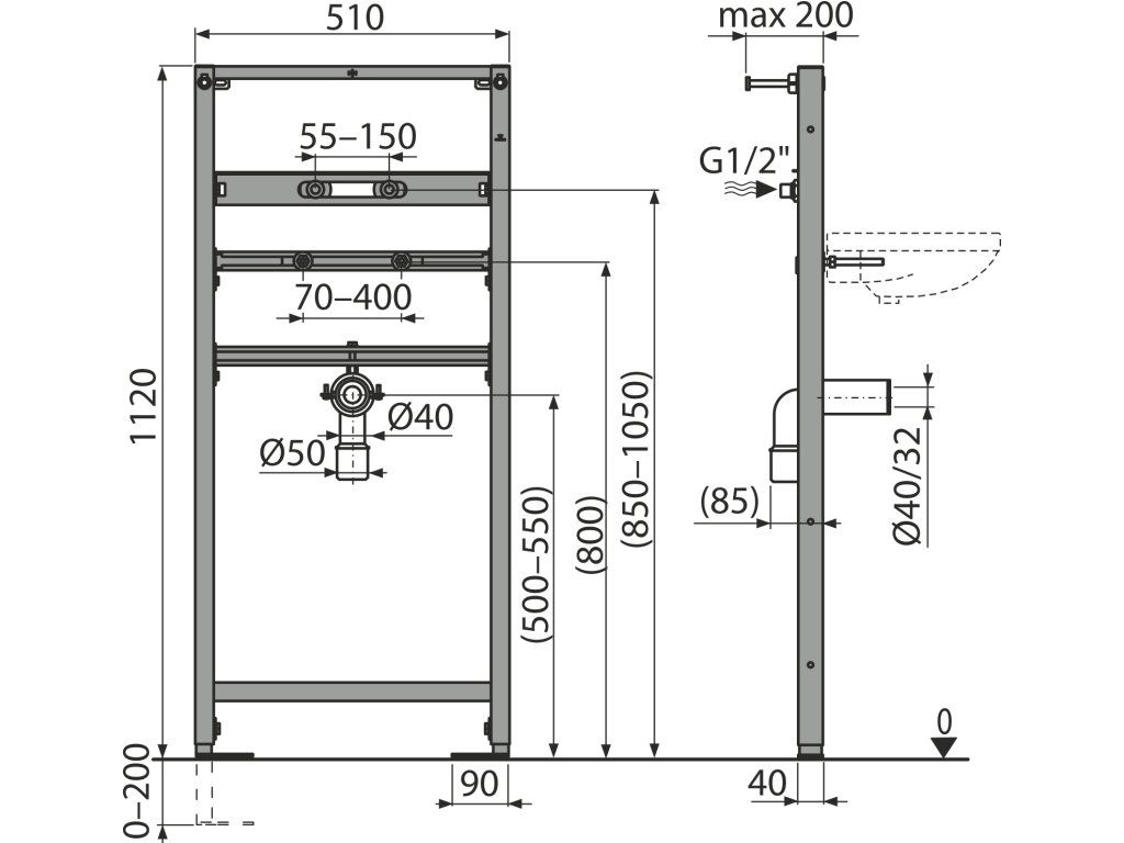 Montážní rám pro umyvadlo a baterii A104A/1120