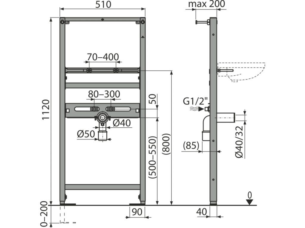 Konstrukce rámu dovoluje kotvení k samostatné dostatečně nosné sádrokartonové příčce nebo před nosnou stěnu