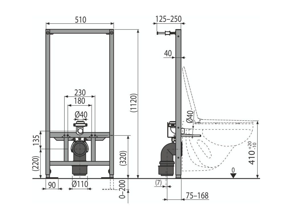 Použití:Pro montáž před nosnou stěnu nebo do sádrokartonové konstrukce