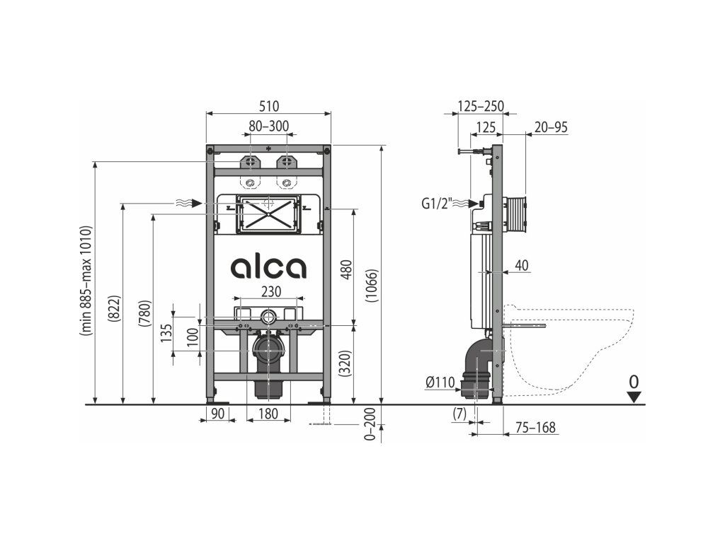 Pro závěsnou výlevku s roztečí kotevních šroubů až do 420 mm a odpadem Ø90/110