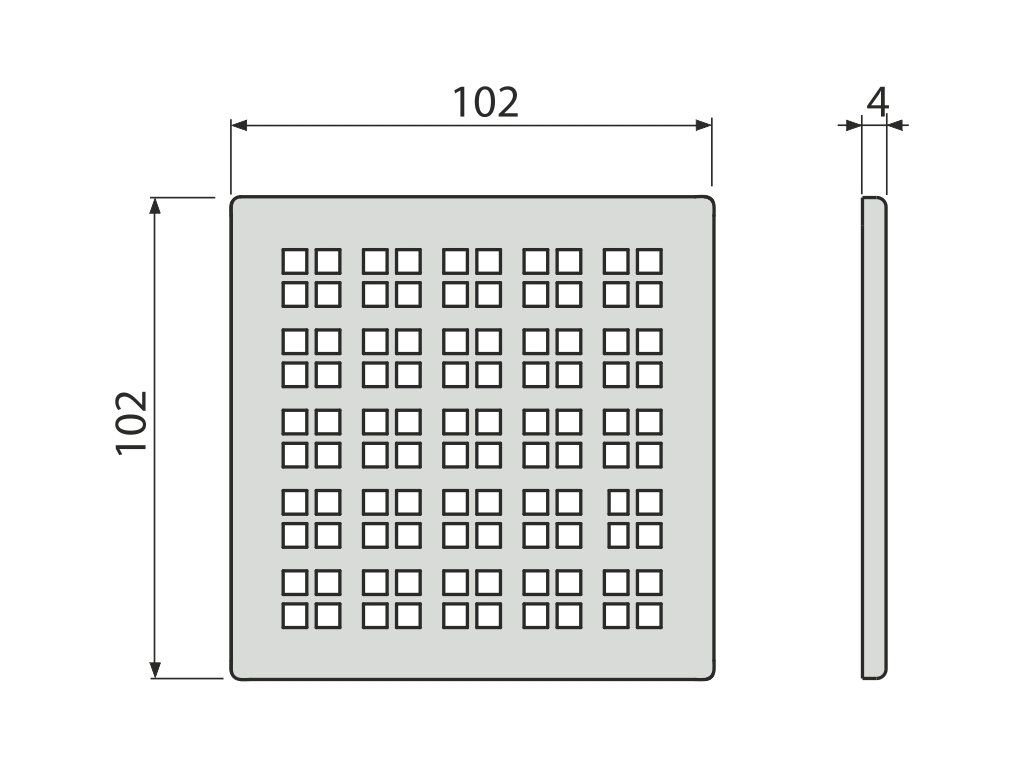 Mřížka pro nerezové vpusti 102×102 mm nerez-mat MPV015