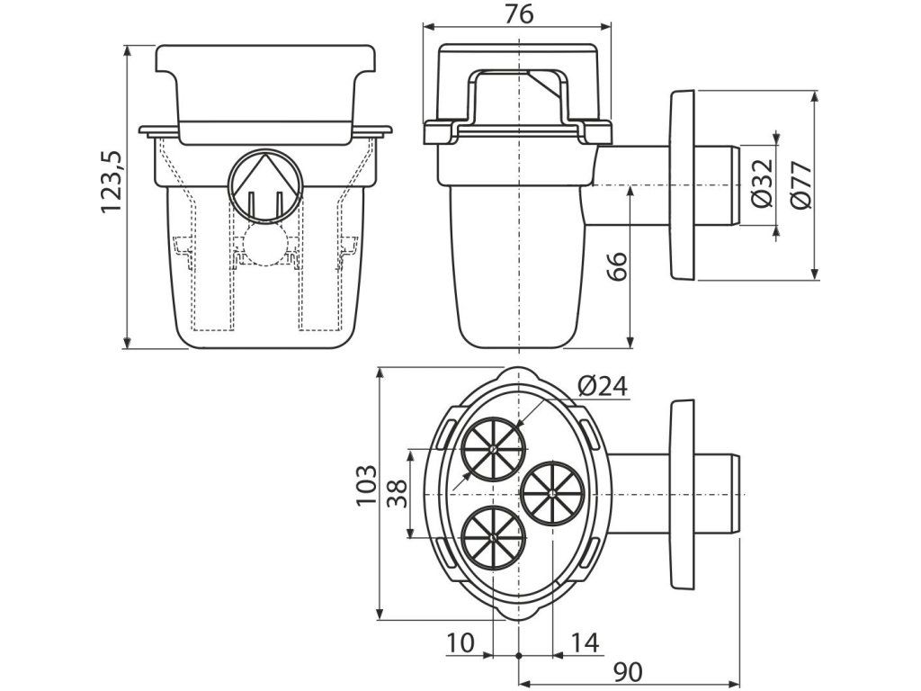 Nálevka se sifonem DN 32 pro odkapávající kondenzát, s kuličkovou suchou zápachovou uzávěrou a držákem hadiček AKS5