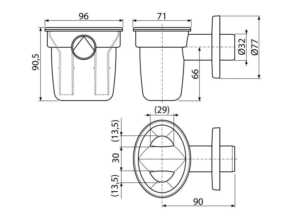 Napojení na odpadní trubku Ø32 mm