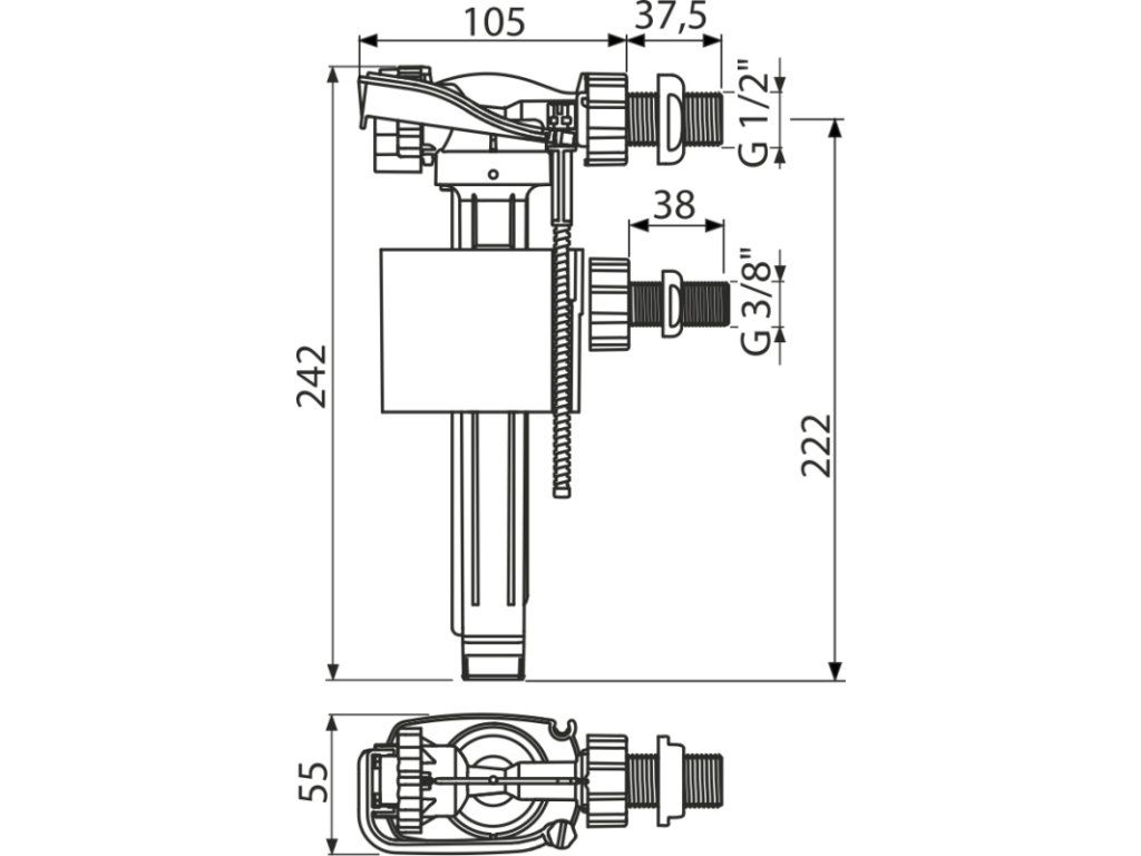 Napouštěcí ventil boční, univerzální A150UNI