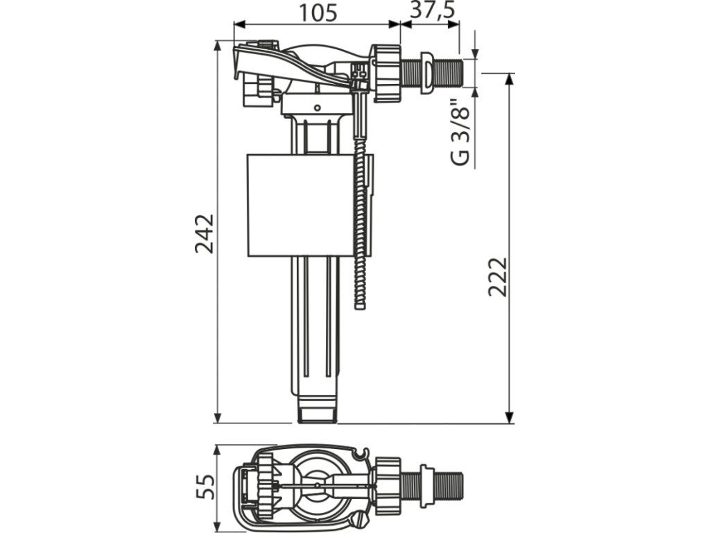 Napouštěcí ventil boční kovový závit pro keramické nádržky A160-3/8