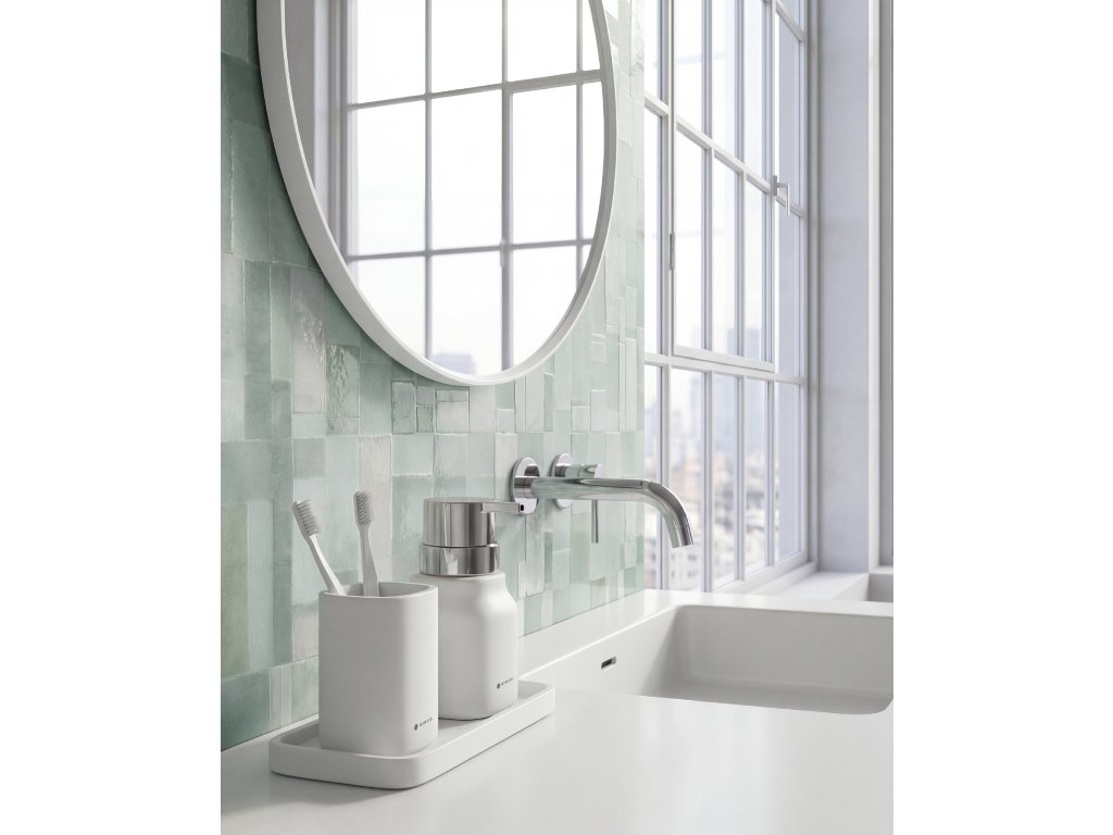 Keramický dávkovač na tekuté mýdlo k postavení na umyvadlo. Matný povrch keramické nádobky Soft-touch je hebký a příjemný na dotek. Pumpa je plastová a díky své větší ploše se dobře používá. Na umyvadlo Příjemný na dotek Velký objem 400 ml Dostupný v několika varianách Dávkovač mýdla lze doplnit také o další výrobky stejné designové řady, jako pohárek na zubní kartáčky.Doplňkové parametry