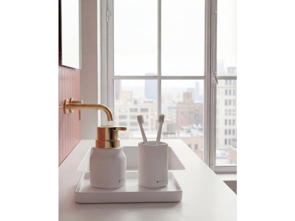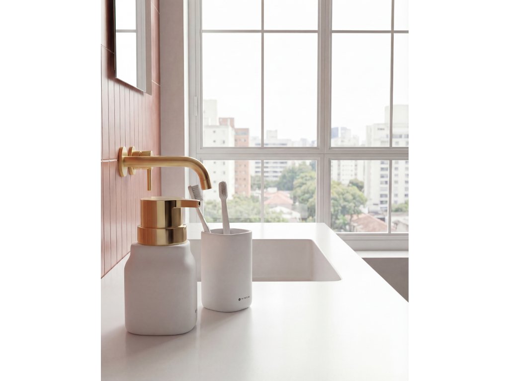 Keramický dávkovač na tekuté mýdlo k postavení na umyvadlo. Matný povrch keramické nádobky Soft-touch je hebký a příjemný na dotek. Pumpa je plastová a díky své větší ploše se dobře používá. Na umyvadlo Příjemný na dotek Velký objem 400 ml Dostupný v několika varianách Dávkovač mýdla lze doplnit také o další výrobky stejné designové řady, jako pohárek na zubní kartáčky.Doplňkové parametry