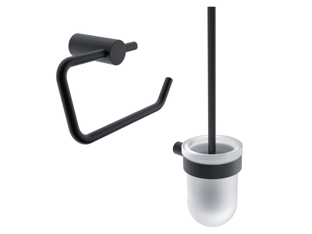 WC sada nástěnná - štětka a keramický držák toaletního papíru je skvělým doplňkem k WC. Tato sada doplňků k WC obsahuje následující výrobky NIMCO ze série Bormo černá: Toaletní štětka BRC 11094WN-90 Nástěnný držák s nízkou nádobkou z matného skla. Rukojeť kartáče z mosazi, povrchová úprava černý mat, černý kartáč. 1 ks. Držák na toaletní papír BRC 11055-90 Držák wc papíru na zeď, bez krytu. 1 ks. Výrobky série Bormo černá lze připevnit na zeď vrtáním. Sada k WC bude koupelně slušet mnohem více, pokud zvolíte i další doplňky série Bormo černá z nabídky koupelnových a WC doplňků NIMCO.Doplňkové parametry
