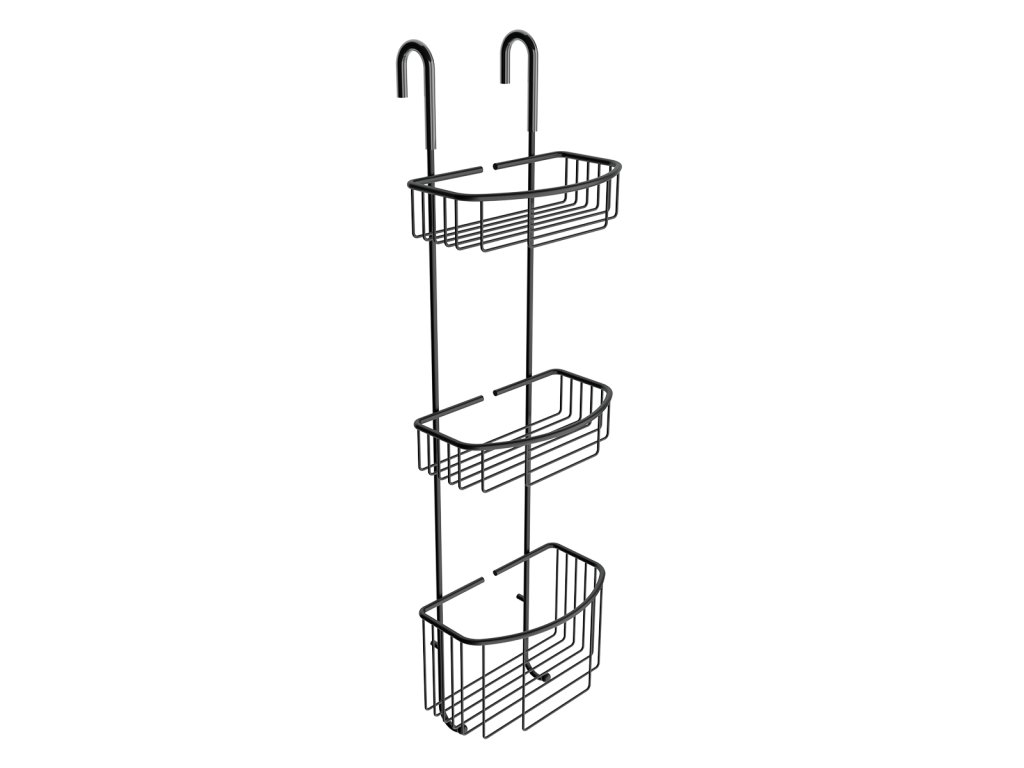 Černá závěsná police třípatrová je skvělým doplňkem do koupelny. Chcete mít svůj oblíbený šampon nebo sprchový gel při ruce, ale zároveň ho nechcete neustále lovit na zemi sprchového koutu? Pak jsou závěsné drátěné police ideálním řešením. V nabídce NIMCO naleznete dvoupatrovou nebo třípatrovou, takže se nemusíte bát, že se se do ní vše nevejde. Hluboké košíky zajistí, aby z nich přípravky nevypadávaly. Organizovanost a pořádek patří i do koupelny a s policemi NIMCO toho můžete hravě dosáhnout. Ve spodní části jsou dva praktické háčky určené k zavěšení mycí houby, kartáče apod. Díky vysoce kvalitní pochromované oceli mají police dlouhou životnost. V zadní části police jsou gumové výztuže pro idelální přilnavost ke sklu. Výztuže zabraňují poškození skla. Pryžová objímka na závěsných hácích chrání sklo i polici před poškozením. Tloušťka skla sprchového koutu pro zavěšení police max 25 mm.Doplňkové parametry