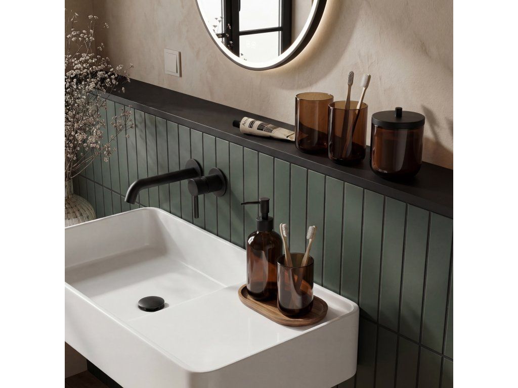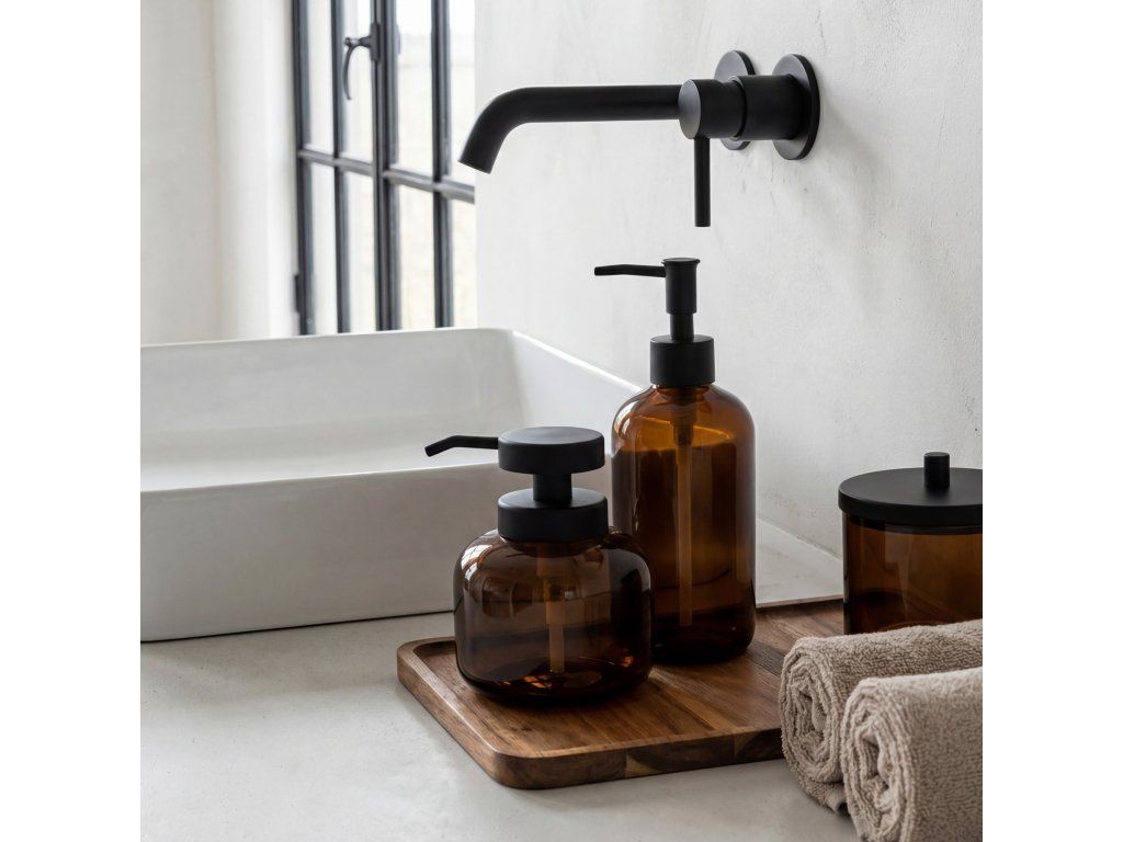 Nová elegantní skleněná série ABU přináší do vaší koupelny moderní a harmonický vzhled. Už nemusíte mít po vaně a umyvadle roztroušené různé plastové barevné lahvičky. Se sérií ABU bude vaše koupelna neustále čistá a uspořádaná. Sklo dodává koupelně eleganci a nadčasovost. Doporučujeme dokoupit podnos na skleněné nádobky AB 70. S touto kolekcí proměníte svou koupelnu v prostor, který je stylový, praktický a vždy dokonale uklizený. Barevné varianty série ABU: Černá – elegantní a minimalistická Hnědá – teplá a přírodní.Doplňkové parametry