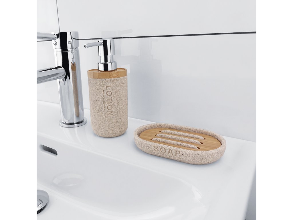 Mýdlenka na umyvadlo písková / bambusové dřevo je skvělým doplňkem do koupelny. KORA v písčité béžové barvě vás zahřeje na první pohled. KORA je návrat k přírodě. Do popředí se derou přírodní materiály i odstíny. Dřevo, bambus, kameny a písek ve své naturální podobě vnášejí do prostoru koupelny uklidňující atmosféru a tolik potřebný pocit tepla a pohody. Mýdlenka bude koupelně slušet mnohem více, pokud zvolíte i další doplňky série Kora z nabídky koupelnových a WC doplňků NIMCO.Doplňkové parametry