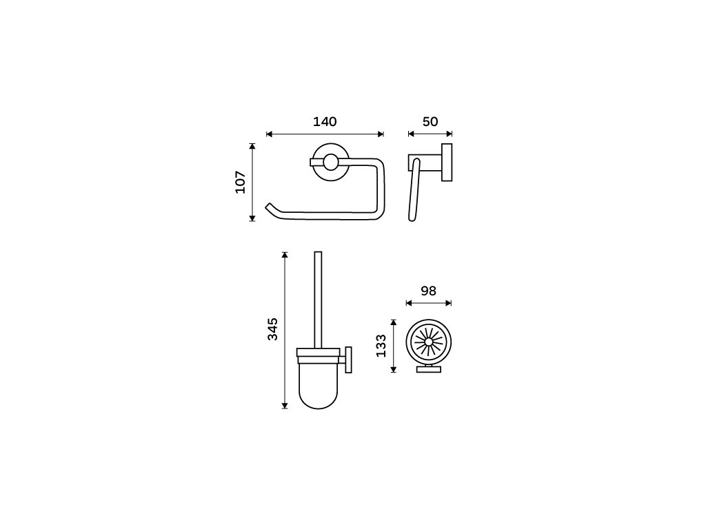 WC sada nástěnná - štětka a keramický držák toaletního papíru je skvělým doplňkem k WC. Tato sada doplňků k wc obsahuje následující výrobky NIMCO ze série UNIX černý: Toaletní štětka UNC 13094WN-90 Nástěnný držák s nízkou nádobkou z matného skla. Rukojeť kartáče z mosazi, povrchová úprava černý mat, černý kartáč. 1 ks. Držák na toaletní papír UNC 13055-90 Držák wc papíru na zeď, bez krytu. 1 ks. Výrobky série UNIX černý lze připevnit na zeď vrtáním nebo přilepením. Sada k WC bude koupelně slušet mnohem více, pokud zvolíte i další doplňky série Unix černý z nabídky koupelnových a WC doplňků NIMCO.Doplňkové parametry