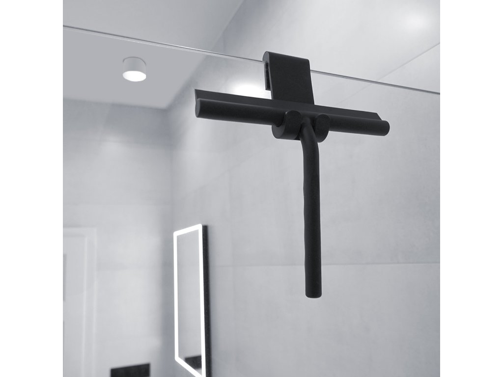 Koupelnová stěrka závěsná do sprchy černá je skvělým doplňkem do koupelny. Závěsná sprchová stěrka je určena k zavěšení do sprchového koutu. Tloušťka skla max 10 mm. Stěrka je vyrobena z kovu. Celý její povrch je obalen matným silikonem. Výhodou silikonové stěrky je její pružnost. Při neočekávaném pádu neponičí sprchovou vaničku nebo vanu. Součástí stěrky je silikonový hák pro zavěšení.Doplňkové parametry