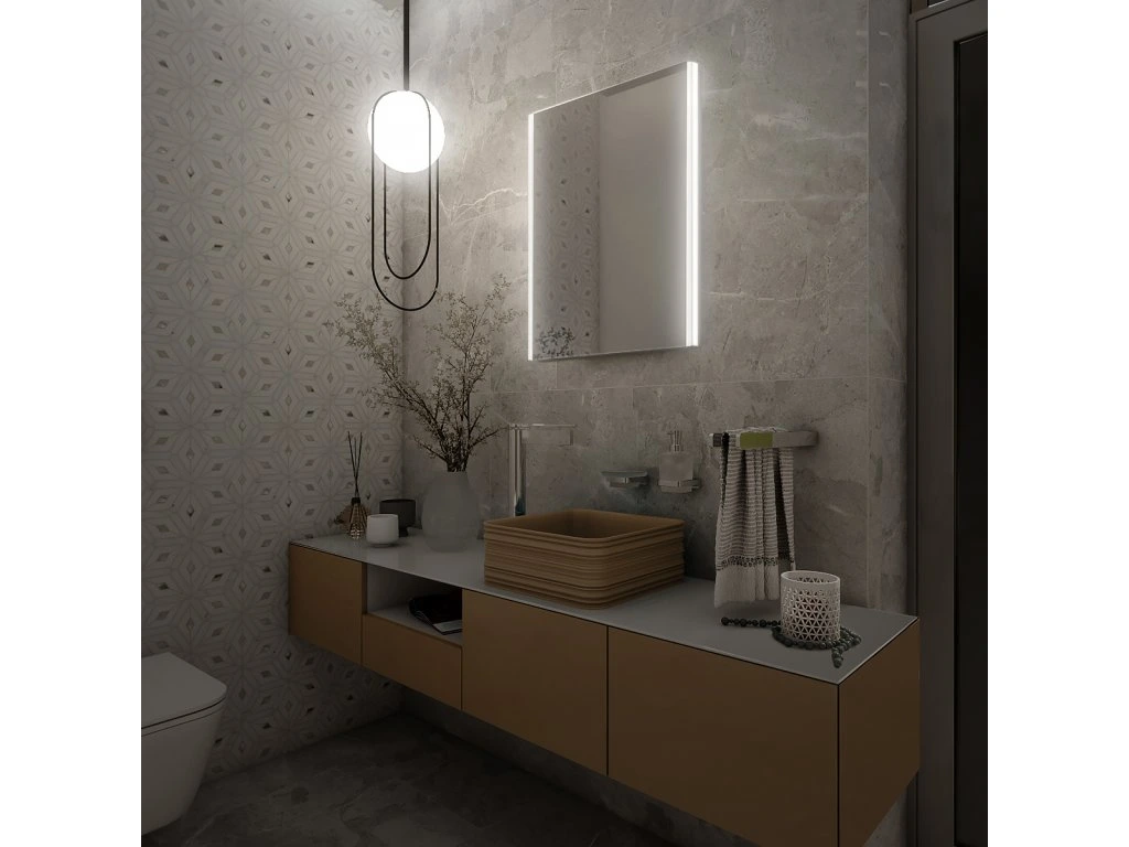 Zrcadlo do koupelny 40x60 s osvětlením po stranách je skvělým doplňkem do koupelny. Zrcadla do koupelny NIMCO vynikají kvalitním zpracováním a moderním designem. Zrcadlo je podsvíceno LED pásky ukrytými v PVC tubě (profil U 20x20 mm), která je umístěna pod vypískovanými bočními stranami zrcadla. Světlo neprochází pouze skrz sklo, ale vystupuje také z bočních stran zrcadla. Plně svítí 20 mm bočních stran zrcadla a vytváří tím zajímavý světelný efekt. Konstrukce je z hliníkového rámu 32x19 mm, sklo zrcadla o tloušťce 5 mm. Zrcadlo lze uchytit horizontálně a vertikálně. Připojení 220-240 V. Ochrana IP 44. Bez vypínače. Zapojení do el. rozvodu a zapínání přes vypínač světel v místnosti. LED čipy s vysokým výkonem. Barevná Teplota denní bílá – jasné polední světlo. Životnost LED diod je až 50 000 hodin. Koupelnové podsvícené LED zrcadlo Životnost diod až 50 000 hodin Příkon 18 W Barevná teplota 6500 K 1296 LumenDoplňkové parametry