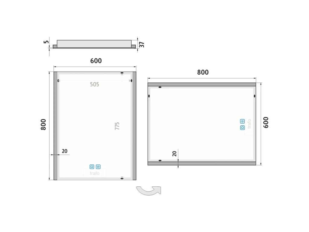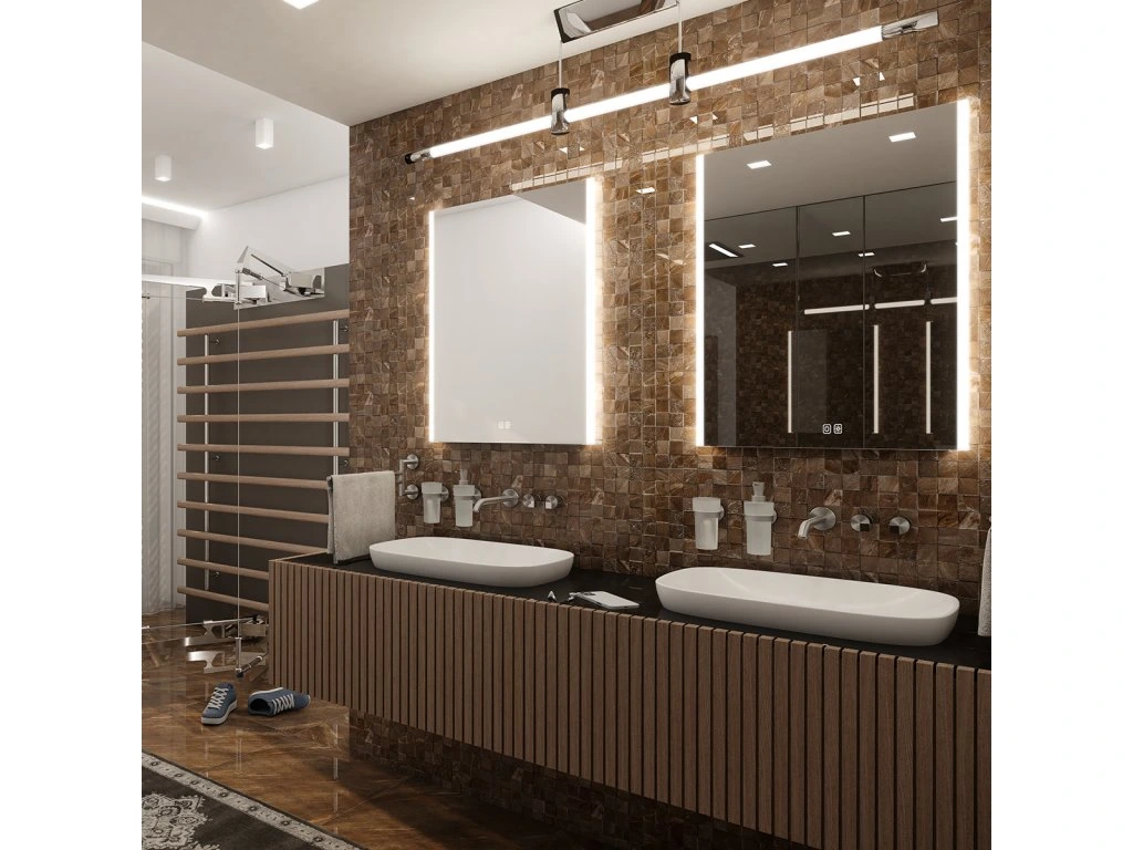 Obdélníkové bezrámové zrcadlo s ostrými rohy a podsvícením ze stran pro moderní a elegantní vzhled. Zrcadlo se ovládá dvěma dotykovými podsvícenými senzory, které umožňují změnu barvy podsvícení, nastavení intenzity osvětlení (stmívání) a disponují paměťovou funkcí pro uložení posledního nastavení. Kromě toho lze zrcadlo ovládat i pomocí nástěnného vypínače, což zvyšuje jeho flexibilitu a pohodlí použití. Ke zlepšení kvality podsvícení je použit difuzor z akrylového skla, který zajišťuje rovnoměrný a měkký rozptyl světla. LED diody jsou elegantně integrovány přímo v difuzoru, což zvyšuje intenzitu světla a zaručuje jeho jednotné rozprostření po celé ploše podsvícení. Výsledkem je příjemné a rovnoměrné osvětlení bez viditelných bodových zdrojů. Zrcadlo využívá nejmodernější LED čipy SMD 2835, které jsou známé svou vysokou svítivostí, energetickou úsporností a dlouhou životností. Hustota čipů 96+96/m (192/m), životnost 50 000 hodin. Parametry LED: Survival Factor = 1, Lumen Maintenance Factor 0,99 a Flicker Metric 0,02, pak zajišťují stabilní, bezblikavé a dlouhodobě konzistentní osvětlení. Nosná konstrukce zrcadla je vyrobena z masivního hliníkového rámu o rozměrech 32x19 mm, který zajišťuje vysokou pevnost a stabilitu. Stejně tak je z hliníku vyroben kryt zdroje a všech elektronických součástek. Sklo o tloušťce 5 mm je opatřeno bezpečnostní fólií, která chrání před zraněním v případě rozbití. Zrcadlo navíc disponuje stupněm ochrany proti vlhkosti IP44, což zaručuje spolehlivost i v prostředí s vyšší vlhkostí. Zrcadlo splňuje všechny české normy a je opatřeno českým certifikátem CE, který zaručuje jeho kvalitu a bezpečnost. Nabízí flexibilní možnosti upevnění, a to jak vertikálně, tak horizontálně, a je dodáváno včetně kompletní montážní sady a kabelové spojky s ochranou IP44. Pro zajištění bezpečné přepravy je zrcadlo pečlivě zabaleno a připraveno k expedici prostřednictvím kurýrní služby. Ovládání: Dotykové senzory + možnost ovládání nástěnným vypínačem Nastavení barvy podsvícení: Ano Barva podsvícení: Nastavitelná v rozsahu 3000–6500 K (od teplé po studenou bílou) Funkce stmívání: Plynulé stmívání Paměť nastavení: Ano Konstrukce podsvícení: K rovnoměrnému rozptylu světla zrcadlo disponuje difuzorem z akrylového skla Integrace LED: LED diody jsou integrovány přímo v difuzoru LED čip: Nejmodernější LED čipy SMD 2835 LED pásek - hustota čipů: 192/m (96+96/m) Životnost LED čipů: Až 50 000 hodin Kvalita osvětlení LED: Survival Factor = 1; Lumen maintenance factor = 0,99; Flicker metric = 0,02 Materiál: Zrcadlové sklo, hliník Materiál konstrukce: Rám zrcadla a kryt zdroje jsou vyrobeny z hliníku Tloušťka skla: 5 mm Ochrana při rozbití: Bezpečnostní fólie Stupeň ochrany: IP 44 Certifikace: Český certifikát CE Umístění: Montáž na stěnu Možnost upevnění vertikálně i horizontálně Montážní příslušenství: Součástí balení je montážní sada a kabelová spojka s ochranou IP 44 Obal: Zabalené pro přepravu kurýrní službou Napětí: Vstupní napětí 220-240 V Výstupní napětí 12 V Příkon: 24 W, světelný tok: 1728 lm Rozměr: v: 800 mm š: 37 mm d: 600 mm Hmotnost: 8,68 kgDoplňkové parametry